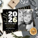 “Hello 2026. Let’s try this again.” Sometimes, the new year can’t come quickly enough. And this is one of those years. A playful visual of modern, bold, white, graphic block typography and real gold foil elegant calligraphy script and confetti dots over black, help you usher in the New Year. Faux gold foil hand drawn lines overlay black on the back. Feel the warmth and joy of the holiday season whenever you send this simple, stylish, personalized photo real gold foil greeting card. Send this to someone special, especially someone with a sense of humor!