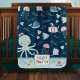 Hello Ocean Octopus and Fish Nautical Blue Baby Blanket