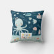 Hello Ocean Octopus and Fish Nautical Blue Kid Throw Pillow