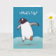 What’s up? The happy penguin is jumping with a blue and teal background with snow. Jump in to say hello to someone with with this cute and funny penguin. Let them know you are thinking of them. Perfect for any age group and male or female.