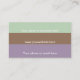 The front of this classy minimal design features a three color palette with plum purple, chocolate brown, and mint green with the greeting hello in a simple white block font at the top right while in the lower left is a place for you to add your name and/or business. On the back the color palette is flipped with three places for you to add your contact details. All elements of this design can be fully customized, so make it your own or leave it as is. Just add your details and you're done!