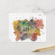 This bold, bright postcard is perfect for dropping a note to your artsier friends. This postcard features a "gaggle" (would that be right?!) of watercolor paint splashes in a random array of colors. Mostly a golden yellow, there's also green, purple, red, blue... and all those muddier-but-nonetheless-pleasing-enough colors that happen when two or three accidentally blend with the water. In the middle, using a modern, casual font is simply the word "Hello!" You can change this (or the font, or its placement,) if you like. You can even remove the word altogether and just use this postcard with paint splatters! Make it your own and enjoy. (I sure plan to. As soon as I publish this, I'm ordering a few for my own collection!)