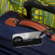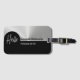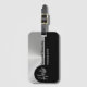 Add this easily identifiable luggage tag to any bag featuring a faux brushed metallic silver background along the top and black bottom half. The name is set on the top and the additional template text below. On the left is a template "Hello" greeting in the circle which you can keep or can be shortened to Hi. Personalize the text fields, remove text or edit using the design tool to select a font style, size, and color you prefer. Complete the pre-printed card with identification details and place it into the built-in slot on the back use a standard size business card.