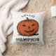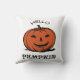 Hello pumpkin jack-o-lantern illustration, Black Throw Pillow