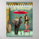 A fun and funky altered art vignette featuring vintage flapper girl on chair, an elephant holding an umbrella, and "Hello Retirement" in neon text. Perhaps it's just what they've been dreaming of...