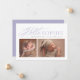 This two-photo birth announcement features an elegant lilac script "hello" beside a name or nickname. It also includes room for the baby's name and other details along with a square and a horizontal photo. The soft violet purple color is perfect for announcing a sweet baby girl and the backer is a coordinating purple on purple stripe. Also available in other colors.