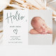 A modern, simple and elegant script hello typography baby birth announcement with 1 photo grid collage, and an elegant typography calligraphy, with hello baby name. Introducing baby! The dark green background color is fully editable.