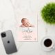 A modern, cute, simple and elegant real rose gold foil script hello typography baby birth announcement with 1 photo grid collage, and an elegant typography calligraphy, with hello baby name. Introducing baby! The pastel blush pink background color is fully editable