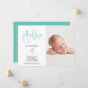 Hello script heart teal photo baby boy birth announcement