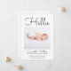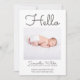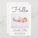 A cute elegant birth announcement featuring your newborn baby photo with hello, and script baby's name. Text can be personalized with baby's birth details beneath the photo. Add an additional photo to the back of the card. You may click "customize further", then use the design tool to change font color, or size for the text and for the "hello". Photo front and photo back.