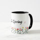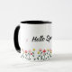 A cute and fresh floral mug featuring the quote “Hello Spring”.