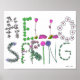 Say "hello" to spring with this spring-themed floral design. This poster is printed with a hand-drawn design featuring the words "HELLO SPRING" written in a variety of colorful flowers and plants.