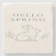 Hello Spring Minimal Bunny Line Art Stone Coaster