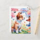 Watercolor painting of an adorable dog surrounded by flowers and butterflies.