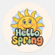 Hello Spring: Smiling Sun and Blue Sky Classic Round Sticker