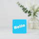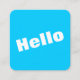 A square hello style profile card template with a simple clean design. A solid color on the front with "Hello" written in a stylish font placed at 15 degrees. Name, profession/job title along with telephone, email and website address on the reverse side. The name also has an underline in a matching colour to that used on the front, this can also be shortened or lengthened. This template is also a good starting point for further customization.