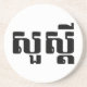 Hello / Sua s'dei in Khmer / Cambodian Script Sandstone Coaster