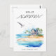 Connect with tour clients this summer with this eye-catching "hello summer" postcard featuring a beach house, ocean, and seagulls.