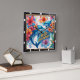 This vibrant square wall clock features two playful blue dolphins leaping amidst an explosion of colorful tropical flowers and cheerful paint splatters. The welcoming text "Hello Summer" perfectly captures a joyful, warm-weather vibe, making it a lively and artistic decorative timepiece for any room.