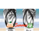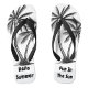 A pair of flip-flops featuring palm tree designs on a sandy beach, the text "Hello Summer" and "Fun in The Sun" in the background.