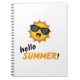 An illustration of a cute funny kawaii happy sun with black sunglasses and "Hello Summer" quote. Summer season is always one of the best vacation and holidays of the year. How are the yellow and orange color made you happy?