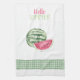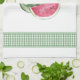 A Hello Summer! kitchen towel to welcome the season with a vibrant watermelon watercolor illustration that takes center stage, accompanied by a stylish green gingham border for a touch of classic elegance.