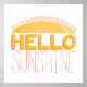 Hello Sunshine hand lettering with abstract sun peeking out above.