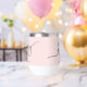This 30th birthday wine tumbler showcases modern script typography reading “Hello Thirty,” complemented by a soft pink background. It's simple yet stylish design makes it a perfect birthday gift for a wine lover.