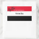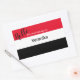 Back to school with custom name sticker labels. Place these name stickers on all the child's belongings. Features the words "Hello, this item belongs to". Red, black and white stripes.