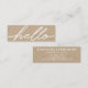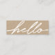 This simple and modern business card features white script "hello" typography on a kraft background. Create a unique first impression for your business.