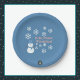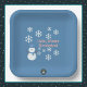 A Slice of Life and Delight presents Hello, Winter Wonderland paper plates with a snowman decorated with white snowflakes, pink writing, and a blue backdrop. The snowman also has a blue hat and scarf.