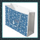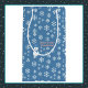 A Slice of Life and Delight presents Hello, Winter Wonderland gift bags. The bags feature a snowman decorated with white snowflakes, pink writing, and a blue backdrop. The snowman gift bags also include a blue hat and scarf.