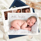 This newborn photo announcement allows you to personalize your card with your baby’s name, date of birth, time, weight, and length. The playful “Hello World” wording adds a modern and joyful touch, making this card perfect for sharing your happy news with family and friends or keeping as a special keepsake.