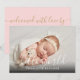 Hello World script baby girl pink photo birth announcement featuring elegant script messages. These sweet birth announcement cards are a perfect way to let everyone know your exciting news. Customise the front with your baby photo and name. The reverse features a beautiful script message along with your personal thank you message and birth stats. Designed by Thisisnotme©