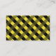 Business card in yellow, black and white with hello written in a fun script, and a back in yellow and black plaid.