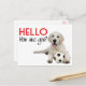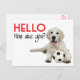 Aww...who can resist the cute face of a Yellow Lab dog? This charming Hello greeting postcard features a yellow Labrador Retriever with a soccer ball highlighted against a crisp white background. This cute Labrador pup is ready to help you send greetings to friends, family, or customers.