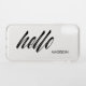 The word "hello" in a modern black cursive script font takes up two thirds of this cool case with a silver glitter background. Your custom name is at the lower right in a smaller simple black sans serif font. Personalize it by adding your name or text in the sidebar. Make a great customized gift for her.