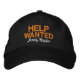 Help Wanted Apply Within on a fine custom embroidered baseball cap.