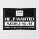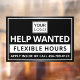 Advertise for help with this help wanted customizable window cling. Add your own business logo and customize the template text. All colors except the dark gray gradient border are customizable and you can change fonts, move and resize elements with the design tool.