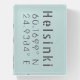 Helsinki Finland latitude and longitude map coordinates in modern urban font. Great gift idea for those who love to travel or as a hometown memento.