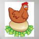 A hen sitting on a golden egg with money under it. This design looks really effective on these Poster
