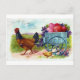 Hen pulling cart Easter Vintage Postcard
