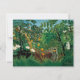 Henri Rousseau Exotic Landscape invitations. Oil painting on canvas from 1910. French painter Henri Rousseau fell in love with tropical scenes during his world travels. Exotic landscape is one of his famous primitivist jungle paintings feauturing monkeys playing in the forest. Two monkeys hang from an orange tree knocking fruit down to their friends below, while a larger monkey snacks on an orange nearby. The tropical foliage is rich, dense, and green, featuring white lilies and other tropical flowers. A pretty gift for fans of Henri Rousseau, jungle paintings, tropical landscapes, primitivism, and French art.