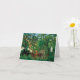 Henri Rousseau Exotic Landscape note card. Oil painting on canvas from 1910. French painter Henri Rousseau fell in love with tropical scenes during his world travels. Exotic landscape is one of his famous primitivist jungle paintings feauturing monkeys playing in the forest. Two monkeys hang from an orange tree knocking fruit down to their friends below, while a larger monkey snacks on an orange nearby. The tropical foliage is rich, dense, and green, featuring white lilies and other tropical flowers. A pretty gift for fans of Henri Rousseau, jungle paintings, tropical landscapes, primitivism, and French art.