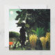 Henri Rousseau Snake Charmer invitations. Oil painting on canvas from 1907. One of Henri Rousseau’s most captivating jungle paintings, The Snake Charmer depicts a mysterious flute player cloaked in darkness charming snakes out of the jungle foliage. The charmer stands on the edge of a river beside a pink water bird as the dark snakes slither towards the sound of the flute. The moon shines in the night sky, and palm trees sway in the distance. A beautiful gift for fans Henri Rousseau, primitivism, post-impressionism, jungle paintings, and French art.