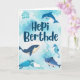 Hepi Berthde greetings card with an under the sea, ocean theme. A birthday card for boys, girls or adults who love sea life and animals like dolphins, whales, fish, seahorses, turtles & jellyfish.