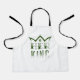Great color and even though I ordered the kid size, it covers well enough to use during the holidays. I am not a big woman and prefer a shorter apron. I stand 5"6" and the length of the garment goes to mid-thigh. The tie straps fit well at my waist and even though there is no neck strap adjustment, the opening is plenty big enough. I am happy with the size and fit. I am sharing my apron with my 10 year old grandson, too! The color is vibrant and looks good, as shown on the website. The stitching looks strong and reinforced. Photographed is front side and back side of the apron, reinforced straps and coloring. My phone camera may not be the best at showing the details.