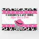 Celebrate brides to be with this disco cowgirl themed bachelorette party banner. It features a fun black and white cow print with an illustration of a disco ball wearing a pink cowboy hat. The text's ready to be customized with your own message.