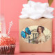 A beautiful vintage portrait of young Queen Victoria, coupled with a bright blue butterfly, placed over a background comprising of a photograph of Buckingham Palace and a vintage postcard. © Julie McIver/Wickedly Lovely