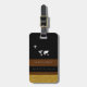 A modern, elegant and feminine design with faux gold and brown stripes on black background with a small image of an airplane and the map of world, personalized with the traveler name and custom words "here we go again".
